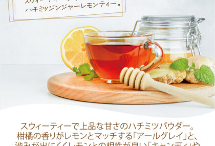 「仕事の集中力UP!しょうが茶ブレンド」など美味しくブレンドしたお茶を提案しています。